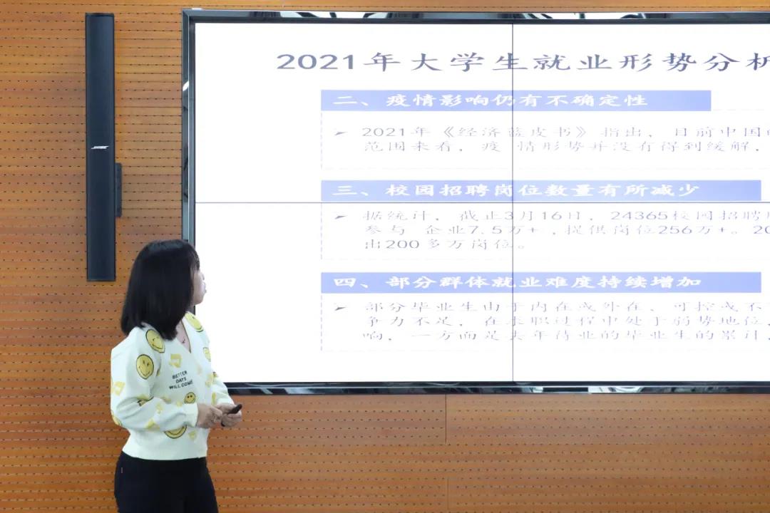 最后建筑学院21级辅导员张会楠、王晶、张佳玲三位老师结合自身求学、工作经历,直观展现本(专)硕直通项目优势,鼓励学生把握当下发展机遇。