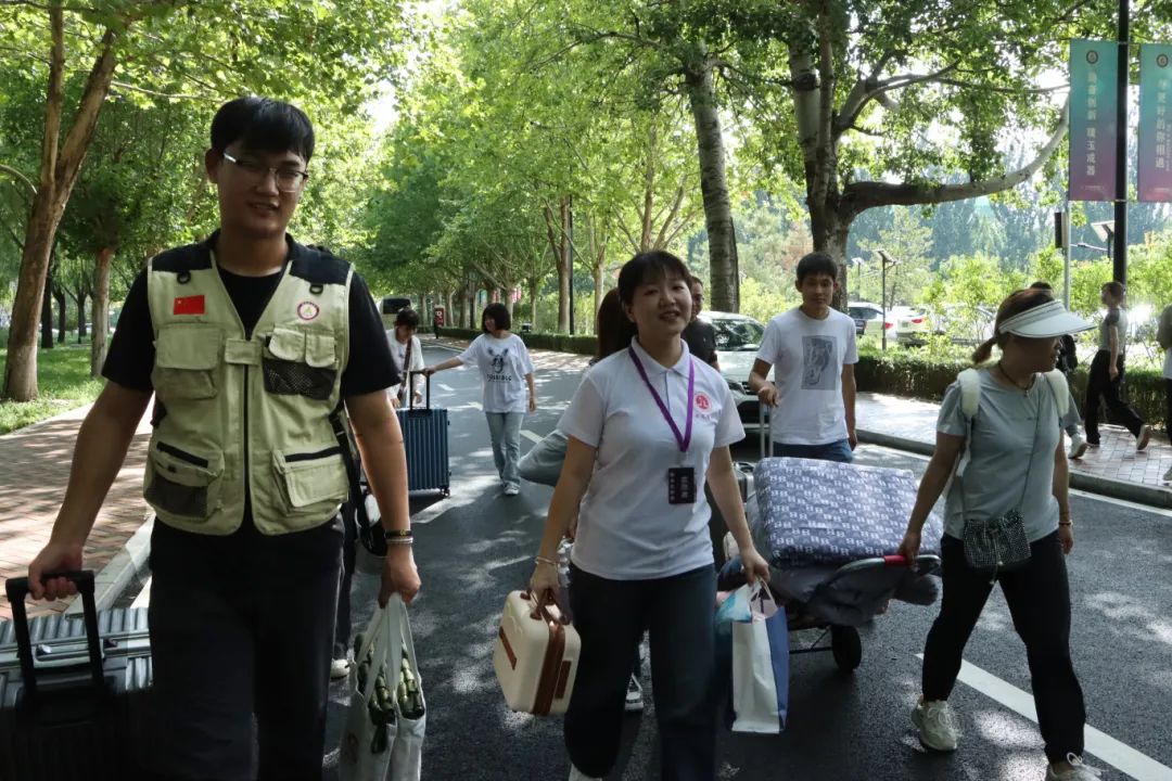 精心准备的打卡签名墙、迎新横幅,精美的入学大礼包等每个细节都体现了燕理对新同学的热诚期待和欢迎。热闹的校园里,不仅有来自五湖四海的新生们,还有来自各个年级同样热情洋溢的迎新志愿者和工作人员,他们在现场尽心尽力,耐心地帮助新生填写报到单,热情地帮新生们指路搬行李,即使高温,大家的热情也丝毫未减。