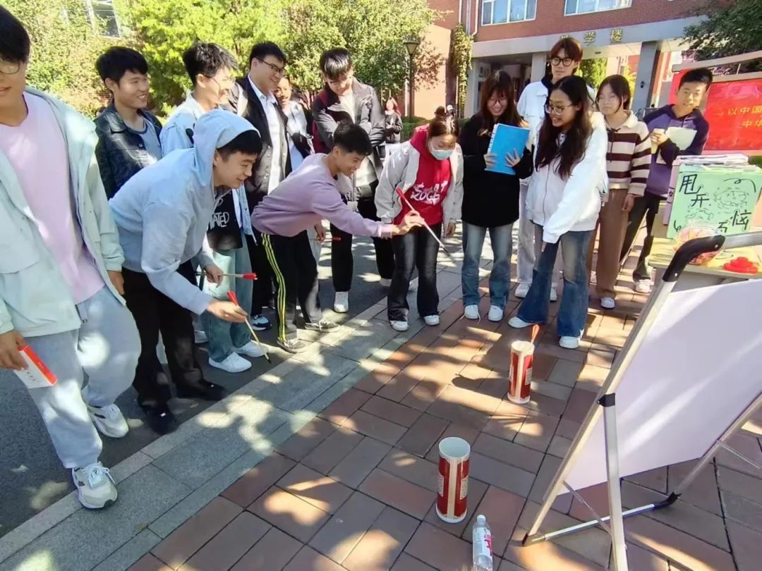 在此次活动中,同学们可以将自己的焦虑写下,放入粉碎箱或收集箱。选择粉碎箱的同学,其焦虑将在活动结束后被统一粉碎,让烦恼随风而去;而放入收集箱的焦虑,则会在后期通过“筑梦心语驿站”公众号发出,由大家共同解答,传递温暖与力量。此外,同学们还参与了投壶游戏,在轻松愉快的氛围中释放压力,感受传统游戏的魅力。