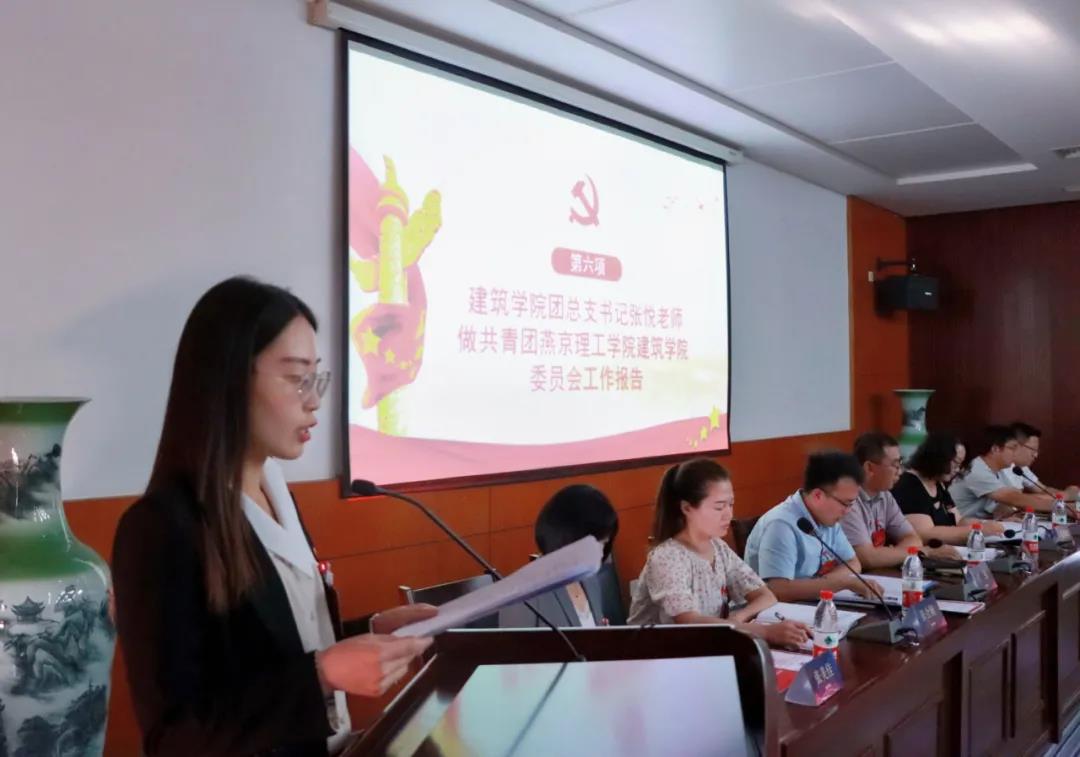 团总支书记张悦作了共青团燕京理工学院建筑学院委员会工作报告,她以团委工作为契机,回顾了近三年我院团总支举办的各项活动及取得的各项成就。她表示,团总支的工作要全力做好思想政治引领,着力激发大学生创新创业激情,深入推进素质教育的同时举行旗帜鲜明开展思想政治教育活动;组织青年宣传贯彻习近平新时代中国特色社会主义思想和党的十九大精神;坚持开展大学生自强之星、寻访校园之星的优秀典型。谱写我院共青团事业蓬勃发展的新篇章。