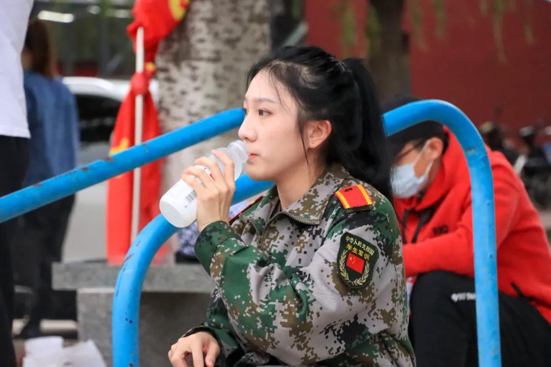 骄阳下,我们一遍又一遍地做摆臂练习,手已经没有力气了,酸痛了,但是我们仍然跟着教官的口号动作着。教官的一声声口号在太阳下响着,我们的汗水一滴一滴地挥洒着。校园上空飘扬着我们以实际行动书写下的坚强气息。