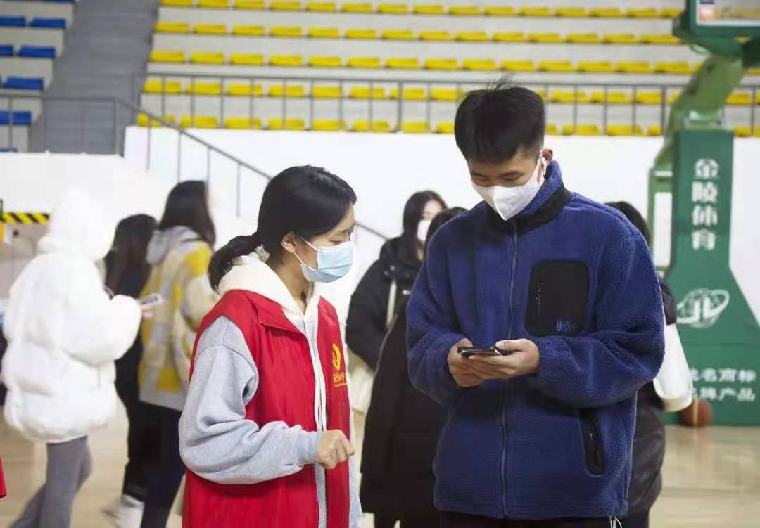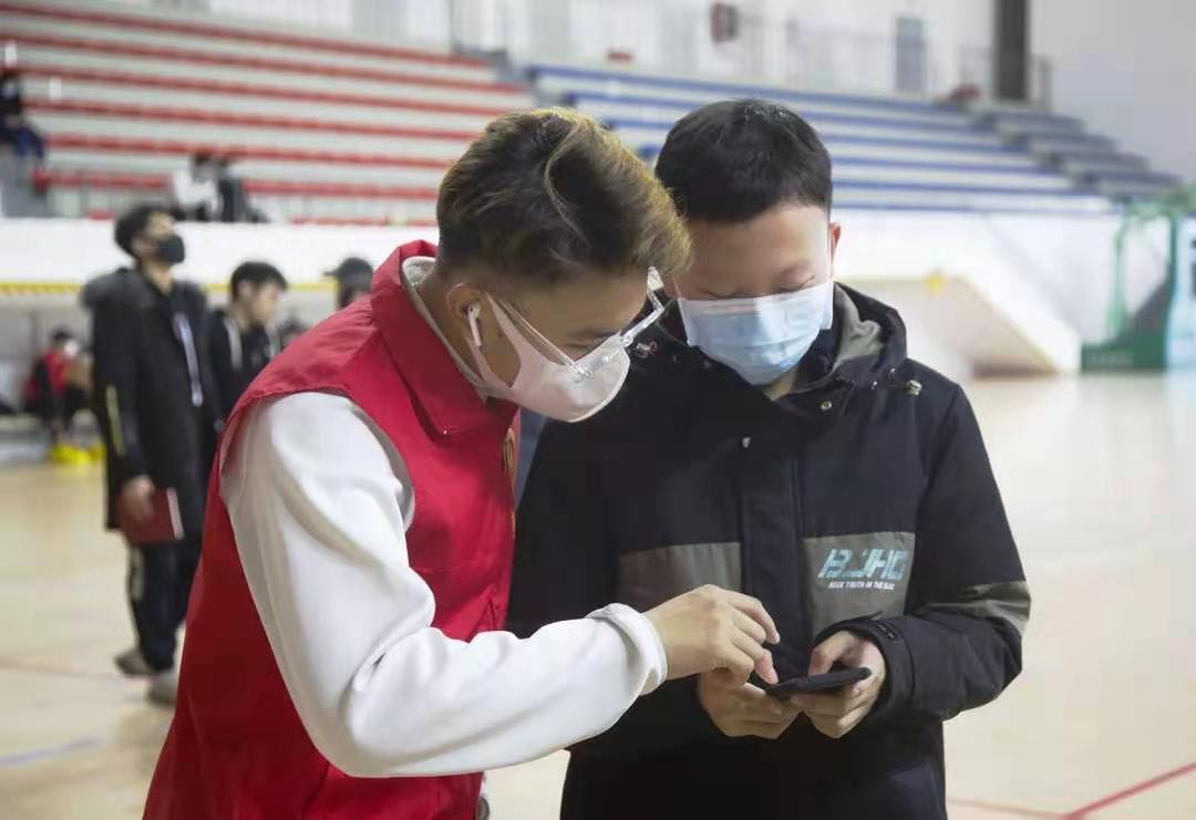 同学们集合完毕后,按照顺序有序进入体育馆内,在志愿者的引导下,按照接种流程,分时段、分批次,有序完成疫苗接种。同时,张佳玲老师和志愿者同学们耐心的为同学们解答问题,有了志愿者与同学们的相互配合,确保了疫苗接种工作平稳、有序、高效的推进,营造了和谐安全的疫苗接种环境。