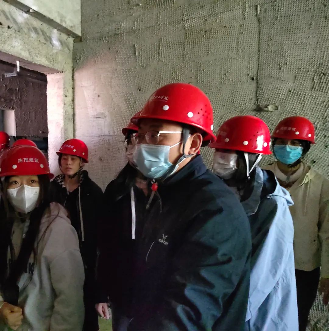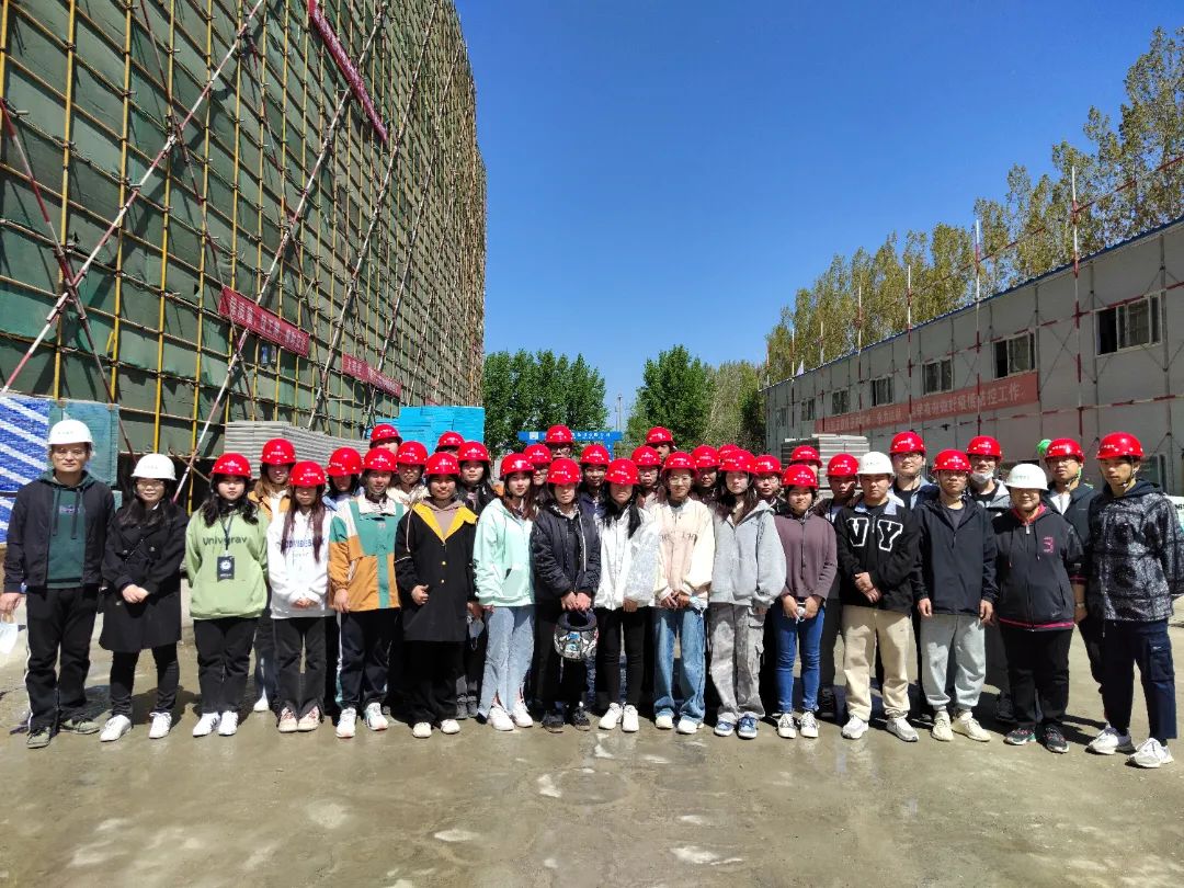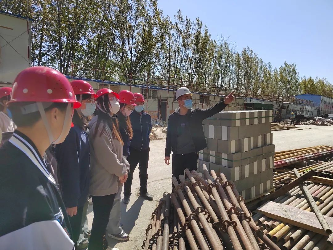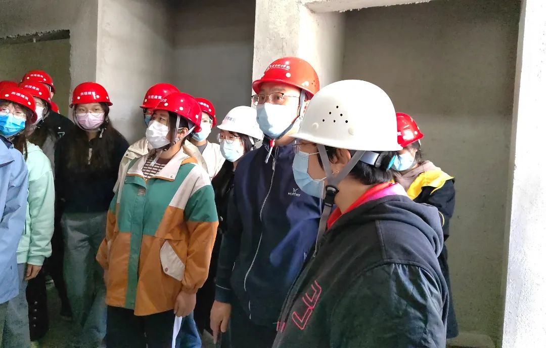 活动伊始,戴承良老师详细地为同学们讲解了进入施工工地的注意安全事项,必须严格按照要求正确佩戴好安全帽,系好帽带,不穿不安全装束。紧接着,学子们跟随着老师们的脚步,配合现场工作人员的安排进入了施工现场,在项目部生产经理的带领下,各位专业课老师分别对现场施工材料的堆放,施工工艺及各个流程的重点、难点以及施工过程质量安全管控等进行了技术讲解;在老师们的讲解与指导下,学子们积极踊跃地提出问题和疑惑,老师们为其详细解答,在参观过程中,学子们对现场的施工工艺、流程、各详细节点、现场质量控制和安全管控进行了全方位了解,大家一边聆听一边拍照,对现场的施工方法和墙体结构进行交流与探讨,对安全施工、施工新做法有了更为深入的理解。活动的最后,学子们与老师们合影留念。