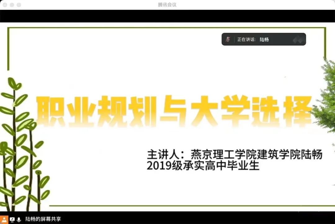 因为某些特殊原因无法及时赶回学校,所以我使用腾讯会议的线上方式向现在即将高考的学弟学妹们展开我的分享与交流。并对一些学弟学妹当前的困惑与焦虑进行排忧解难。