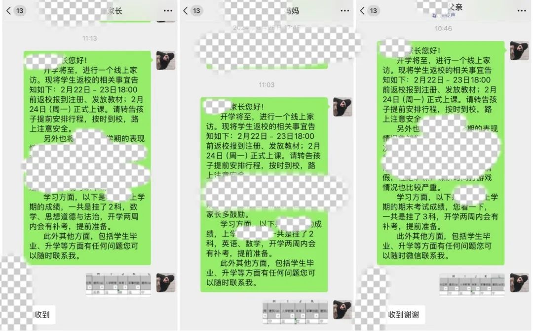 在家访过程中,老师向家长们反馈了学生在学校的学习、生活情况,包括学习成绩、课堂表现等。针对学生在学习上存在的问题,与家长共同探讨解决方案,提出合理的建议,鼓励学生以提升自身学历为目标。此外,通过家访也了解到了学生寒假期间在家的表现情况,最后也告知了家长学生返校的时间及相关注意事项,嘱咐学生按时返校,迎接新学期。