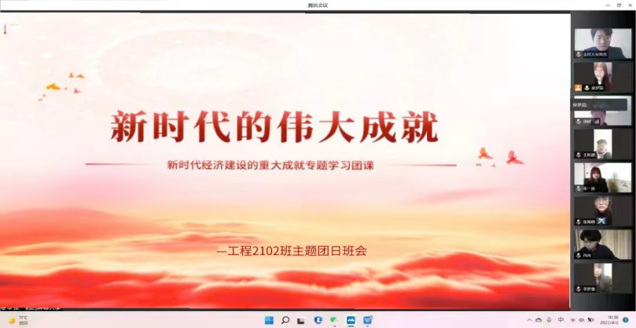 本次活动各团支部采取线上腾讯会议的形式开展。活动伊始,主讲人带领同学们奏唱团歌并学习《中国特色社会主义新时代新特点新使命》(部分),使同学们更加了解我国新时代的伟大成就,进一步坚定了同学们永远跟党走的信念和决心。