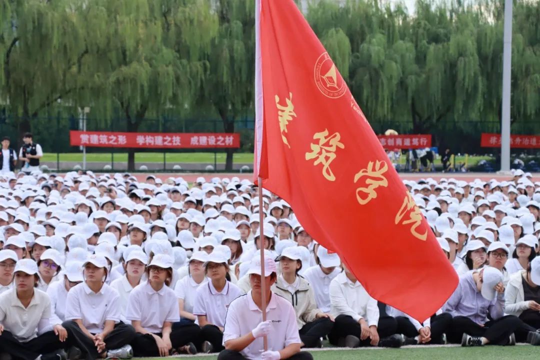 在分列式汇报表演中,建筑学院的新生们步伐整齐划一,口号响亮有力,每一步都踏出了青春的风采和力量。他们的表现赢得了在场师生的阵阵掌声,充分展现了军训期间所付出的努力和汗水。