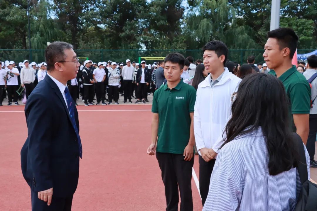 在汇报表演结束后,建筑学院党总支书记郭磊亲临现场,对新生们的军训成果给予了高度评价,并对他们取得的成绩表示祝贺。接着,郭磊书记与现场师生合影留念,教官们与学生们也积极合影留念。在镜头前,他们笑容满面,仿佛这一刻的欢乐和友谊将永远定格,这些合照见证了教官与学生们之间深厚的师生情谊。