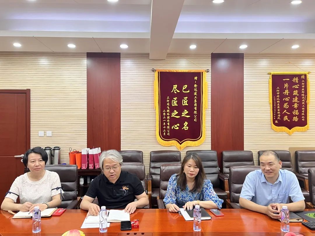 为进一步推进访企拓岗促就业专项行动走深走实,加强校企合作交流,拓宽学生实习、就业渠道,搭建毕业生高质量就业平台,7月8日下午,燕京理工学院副校长宋伟、建筑学院院长宋丽辉、书记郭磊以及副院长霍达一行赴隆达建工集团调研交流。隆达建工集团董事长肖渤、副总经理孙玉振、人力资源部部长孙桂委以及办公室主任王瑞丽参加了本次座谈交流会。