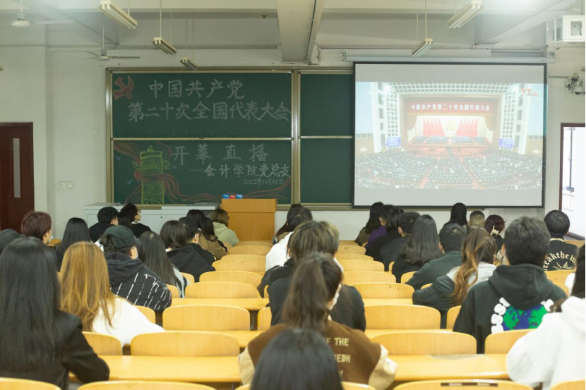 2022年10月16日10时,中国共产党第二十次全国代表大会在北京人民大会堂开幕。会计学院党总支组织师生党员和学生干部观看了开幕会。