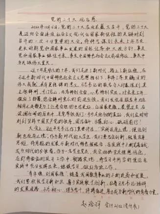 本次开幕式习近平总书记明确了中国共产党的中心任务:团结带领全国各族人民,全面建成社会主义现代化强国,实现第二个百年奋斗目标,以中国式现代化全面推进中华民族伟大复兴。百年征程波澜壮阔,百年初心历久弥新。新时代的伟大成就是党和人民一起拼出来、干出来、奋斗出来的。会计学院师生将在自己的岗位上迸发出青春能量,为中华民族的伟大复兴不懈努力。