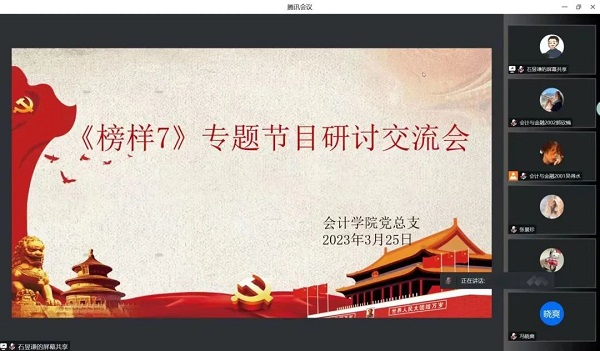 为深入学习贯彻习近平新时代中国特色社会主义思想和党的二十大精神,会计学院党总支召开党员大会,集中观看《榜样7》专题节目。