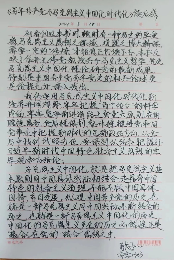读书交流会上,学员们进一步了解了马克思主义中国化时代化这一宏阔命题,大家认真阅读,踊跃分享,结合所学知识及党史书籍的阅读,写下心得体会。学员们纷纷表示:坚持把马克思主义基本原理同中国具体实际相结合、同中华优秀传统文化相结合,是全面总结我们党推进马克思主义中国化时代化历程得出的科学结论,深刻揭示了马克思主义在中国创新发展的内在机理,是马克思主义自身发展的需要,是开辟和拓展符合中国实际正确道路的需要,是马克思主义在中国落地生根、深入人心的需要。