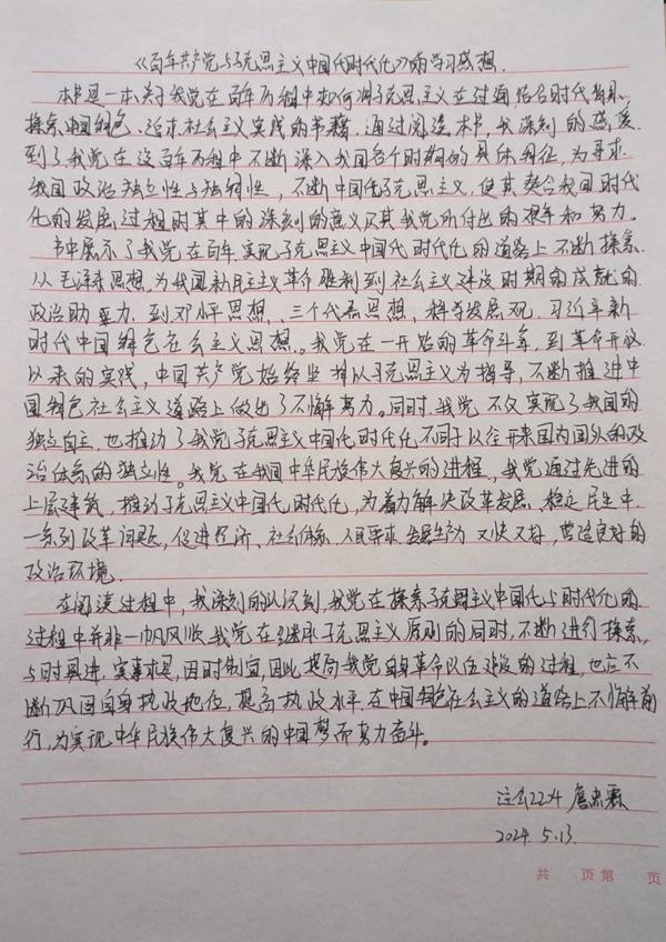 为深入学习领会当代中国马克思主义、二十一世纪马克思主义,5月20日会计学院党史读书班开展读书交流分享会2024年六期《百年共产党与马克思主义中国化时代化》。