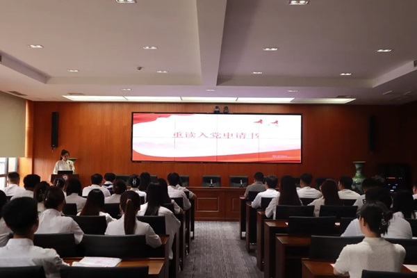 大会在庄严的国歌声中拉开序幕。毕业生党员代表李诗萌重读入党申请书。我虽然是个平凡人,但我有着不平凡的人生理想,成为一名优秀的共产党员。身为毕业生党员,我们肩负着特殊的身份与责任。这一身份赋予我们的不仅仅是荣誉,更是使命。我们应始终忠诚于党的事业,为党的事业奋斗终身。