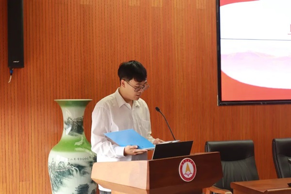 毕业生党员代表颜承旭发言,他表示将继续认真学习贯彻习近平新时代中国特色社会主义思想和党的二十大精神,持续学习《中国共产党纪律处分条例》,不断加强党性修养和道德水平,以更加饱满的热情和更加坚定的信念,投身到党和人民的事业中去,努力成为一名合格的共产党员,为实现中华民族伟大复兴的中国梦贡献青春力量。