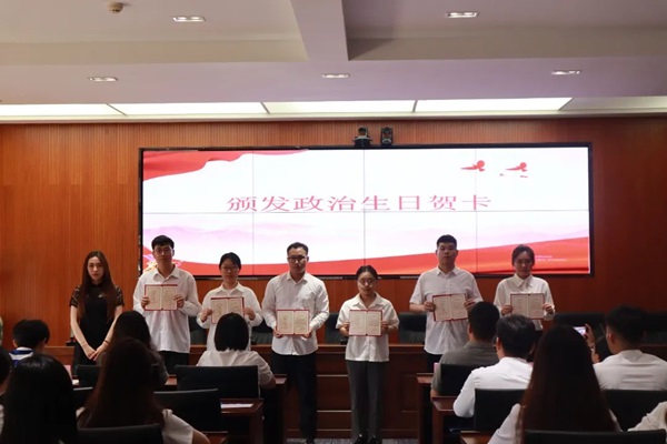会计学院20级辅导员李莹老师为毕业生党员代表颁发政治生日贺卡。“政治生日”不仅是党员入党的纪念日,更是每一位共产党人的信仰名片。贺卡上既有暖心的祝福,也有殷切的希望,激励每一位党员牢记党的宗旨,忠实履行党员职责义务,踔厉奋发,不断前行。