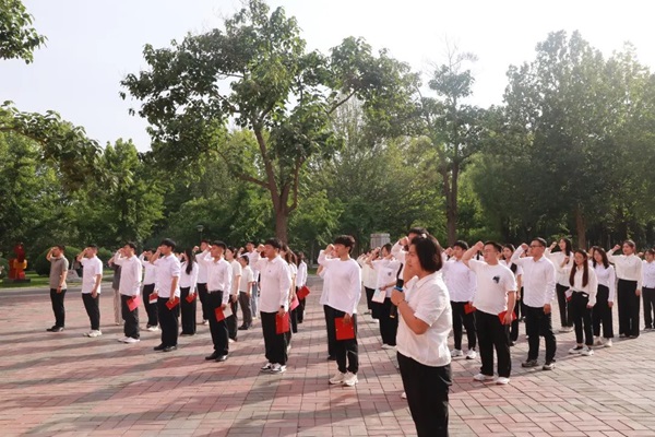 参会人员移步至党建广场,由会计学院学生第一党支部书记张小芳带领毕业生党员重温入党誓词,全体党员右手握拳,庄严宣誓,决心用实际行动践行对党的铮铮誓言。