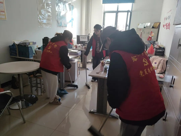 志愿者们早早地集合完毕,他们手持清洁工具,脸上洋溢着热情的笑容。此次志愿活动的主要任务是打扫办公区域的卫生。活动伊始,负责人向志愿者们分配区域并讲解注意事项。分配完毕后,志愿者有序排队领取卫生清扫工具,开始打扫卫生,志愿者们干劲十足,拿起抹布、扫帚,拖布等劳动工具,对办公区域的卫生进行全面清理。
