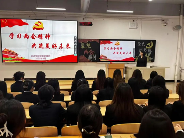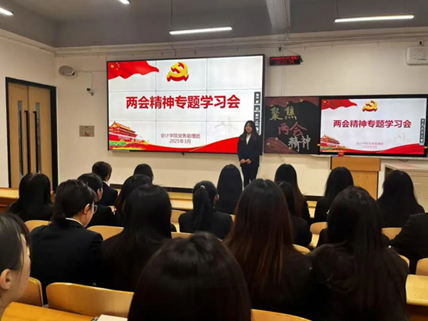 为深入学习两会期间发布的重要政策与发展规划,领会两会精神,切实增强同学们的政治素养与责任担当,会计学院于3月12日开展 2025年第二期分享交流会——《聚焦两会精神》。