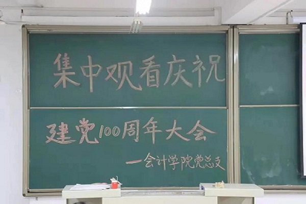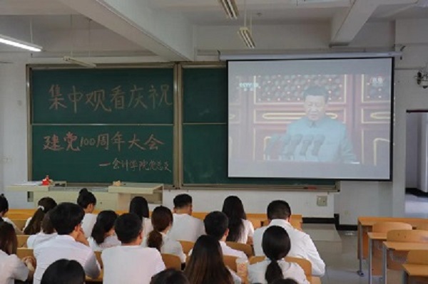 2021年7月1日上午8时,庆祝中国共产党成立100周年大会在北京天安门广场举行。会计学院党总支组织师生党员于综合楼101观看了活动转播。
