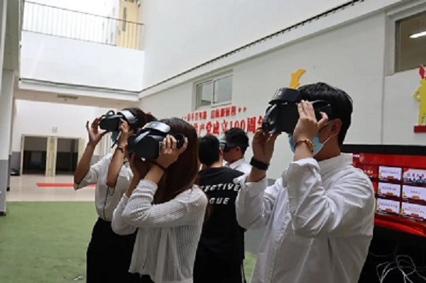 接着是党史VR学习。党史VR网上展厅,依托网络云端数据,实现超传统的3D互动、资源汇聚、师资共享,让操作者拥有沉浸式体验。在党史VR学习区,同学们怀着好奇激动的心情,纷纷带上VR眼镜,近距离感受纪念馆和真实革命圣地。活动结束后,大家合影留念。