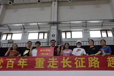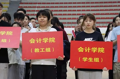 会计学院师生怀着对中国共产党的敬佩之情全身心的投入到比赛当中。他们在赛场上配合默契,展现出大无畏的精神和顽强意志,充分展示了会计学院师生良好的精神风貌。赛场上,队员们互相加油打气的呐喊十分振奋人心!