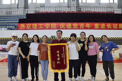 为庆祝中国共产党成立100周年,回顾历史,缅怀先烈,燕京理工学院于6月25日上午在体育馆举行“庆贺建党百年 重走长征路 趣味运动会”主题比赛。趣味活动运动会以中央红军长征为主线,意在让学生深刻体验到红军长征的艰难险阻,继承革命先辈意志,弘扬爱党爱国情怀。会计学院党总支书记胡国超,带领张小芳、刘烜江、吴晓君、韩秋颖、周欣丽、张倩倩、强蔷、李昆遥、冯嘉姝、邱海洋组成的教职工代表队和学生会体育部组织的学生代表队参加了此次比赛。