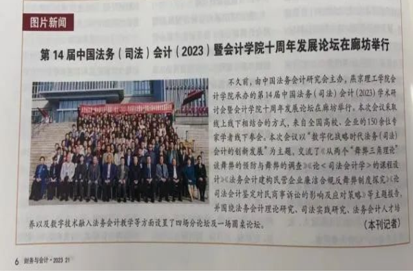 《财务与会计》大力宣传第14届中国法务(司法)会计(2023)学术研讨会暨会计学院十周年发展论坛