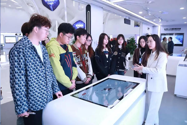 企业代表李树楠热情接待了会计学院师生代表,对师生代表表示了欢迎,并带领参观了企业的展厅企业、办公区域和实训基地,详细介绍了企业在财税审领域的创新实践和成功经验,通过展板、多媒体等多种形式,带领师生代表了解了公司在财税审计领域的创新成果和领先技术。师生们感受到了企业现代化、智能化的工作氛围,对数字化财税审产教融合有了更加深入的了解。