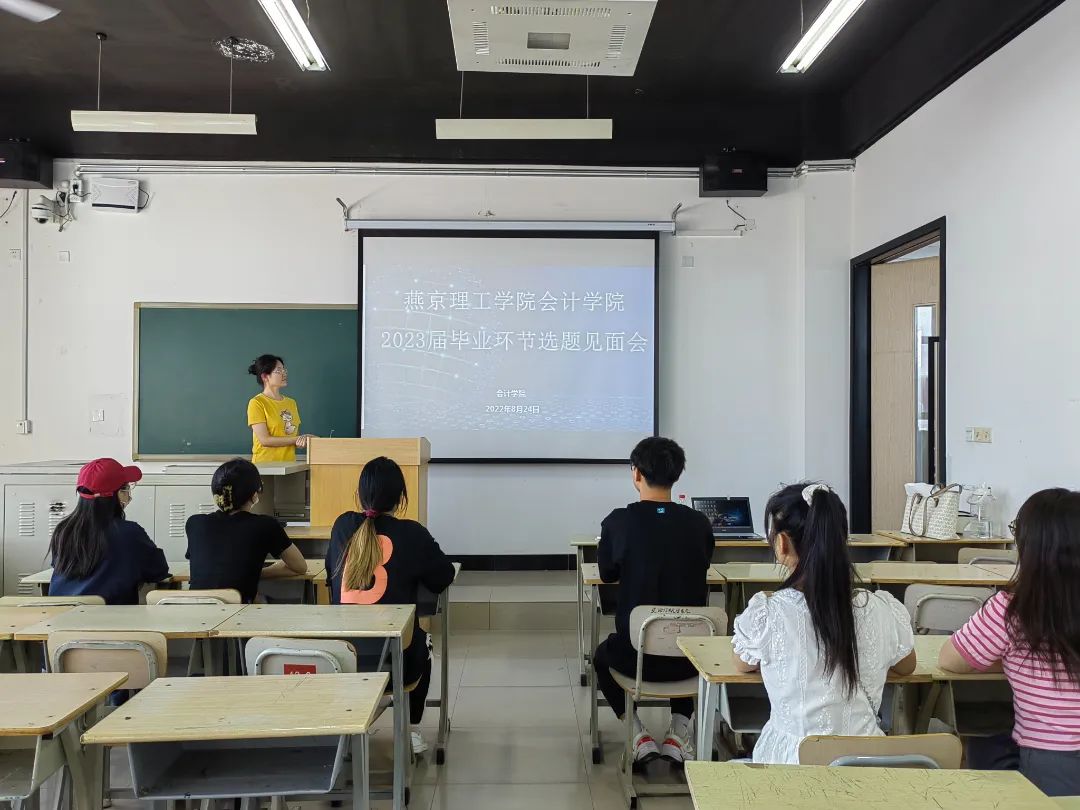 时光如白驹过隙。新学期的号角再一次吹响,在目前国内疫情形势依然严峻的情况下,为了确保本科生毕业论文工作的顺利进行,会计学院于8月24日下午统一组织了2023届本科毕业论文指导见面会。本次见面会分为15个小组,采用线上和线下相结合的方式,以确保每位同学都能按时参加。与此同时,本次选题指导见面会还邀请了34位来自中国政法大学、首都经贸大学、中央财经大学、国家会计学院、北京化工大学等十余所高校的专家教授协同助力我院毕业论文选题指导工作,从选题源头严把质量关,以确保毕业论文工作质量不断提升。