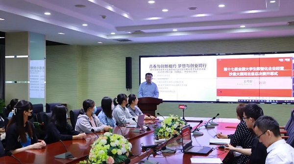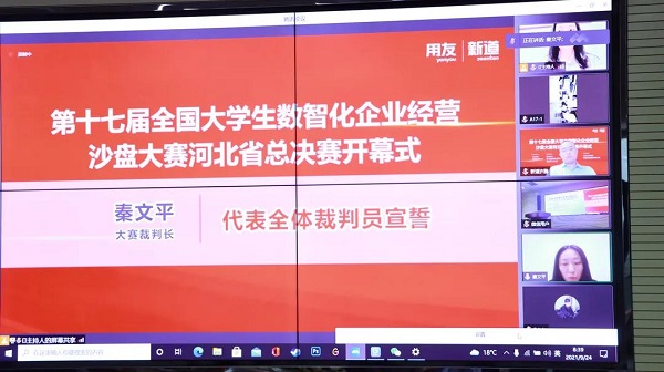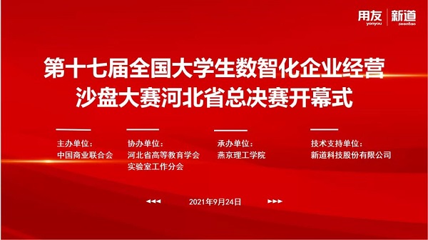 9月24日,由中国商业联合会主办、燕京理工学院承办、新道科技股份有限公司担任技术支持的第十七届全国大学生数智化企业经营沙盘大赛河北省总决赛于燕京理工学院正式开幕。由于疫情影响,本次开幕式改为线上举行。燕京理工学院党委副书记、副校长王传超,会计学院院长杨良教授,新道科技股份有限公司华北区总经理许鹏以及来自河北省各参赛高校的老师和同学们齐聚开幕式。