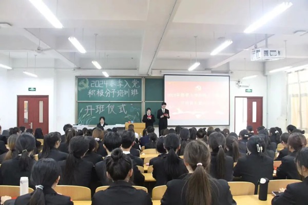 为进一步加强学生思想政治教育,提高学生的政治素养和综合能力,培养一批有理想、有担当、有素质、有文化、有纪律的积极分子,为学校和社会的发展注入新的活力。中共燕京理工学院委员会会计学院分党校2024年春季入党积极分子培训班开班仪式暨第一讲在综合楼201举行。参加本次开班仪式的有燕京理工学院党办副主任吴丹、会计学院党总支书记胡国超、书记助理高利岩、会计学院学生第二党支部书记冯云珠、会计学院教工党支部书记杨慧慧、全体辅导员老师以及会计学院2024年春季入党积极分子学员。