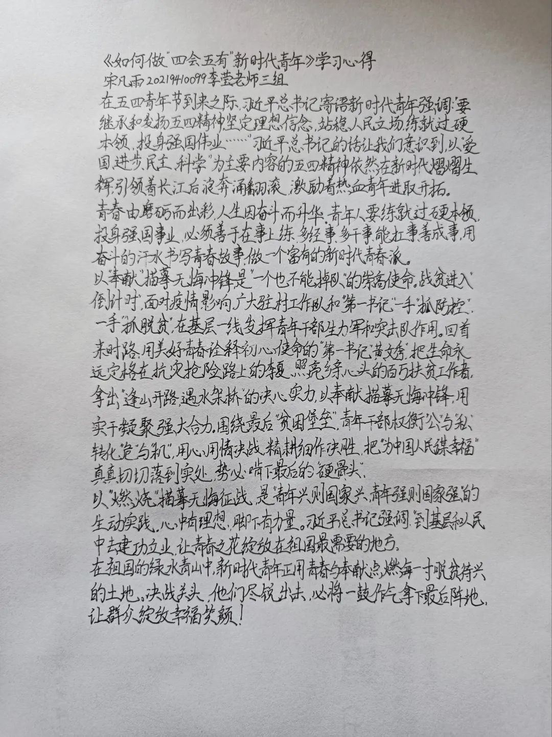 为了更好的督促学生干部学习,及时检验和巩固学习成果。在第一讲结束后,筹备组为整体学生干部布置了相关作业,要求学生干部们搜索《奋进新征程,建功新时代》进行自主学习,学习结束后进行心得体会分享。通过作业的方式,使学生干部更好的在党的百年光辉历史中感悟真理的味道,吸取成长的智慧,为推动大学生思想政治教育高质量发展增添动力。以下为优秀作业的部分展示: