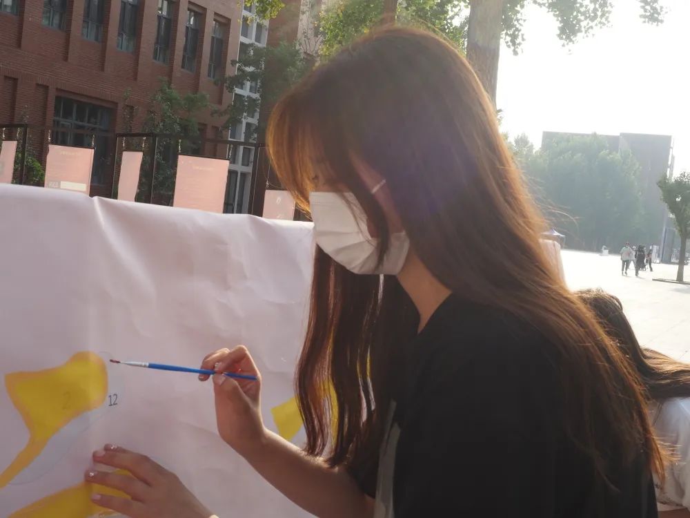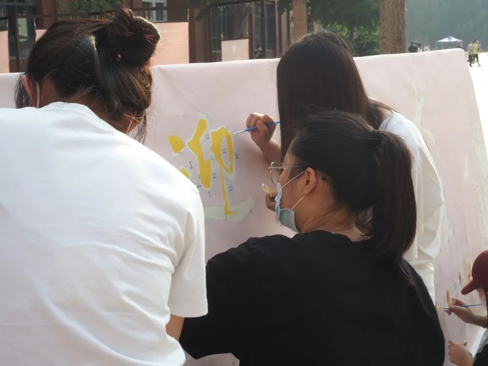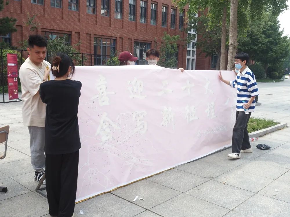 团总支同学们定制了一幅关于二十大的数字油画,放在了迎新场地上,让来校当天的新生共同绘画,以迎新征程。