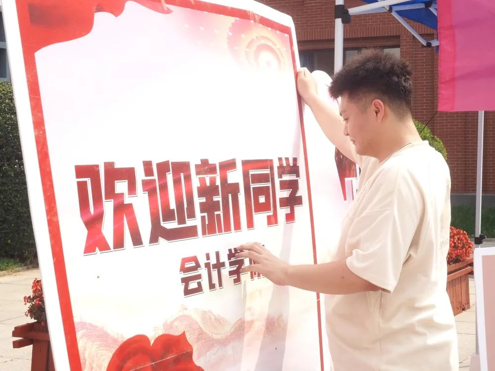 云收夏色,入校迎秋。为迎接2022级新生们的到来,展现会计学院的特色,会计学院团总支全力打造了一个独特的迎新仪式,把盛夏末的礼物送给了新生。9月4日E楼前迎新点,团总支同学们纷纷开始布置。