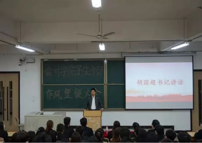 会议伊始,由胡国超书记发言,他强调了学生干部作为联系学院与学生之间的纽带和桥梁,是开展各项活动的组织者和实施者,要把作风建设活动精神落到实处,加强学生干部队伍作风建设。同时,胡书记指出要树立大局意识与责任意识,坚持命运共同体理念,在以会计学院整体大局为重的前提下进行良性竞争,荣辱与共,共同打造一支作风优良的干部团队。
