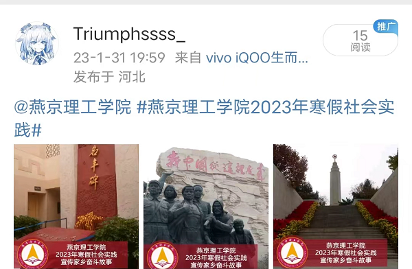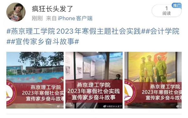 讲好家乡故事,坚定文化自信。本次实践活动的顺利展开,让文化的记忆与底蕴深植入里,也让同学们深刻体悟了文化的魅力。相信在燕理,会有更多勇于担当使命的少年欢谈共聚。