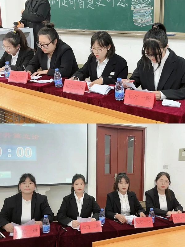 辩手们精辟的措辞和犀利的言语展现出了辩手的高超技艺,双方互不相让、毫不示弱。最后,由四辩总结陈词,分别指出了对方陈述的漏洞,又更进一步的论述了自己的观点。