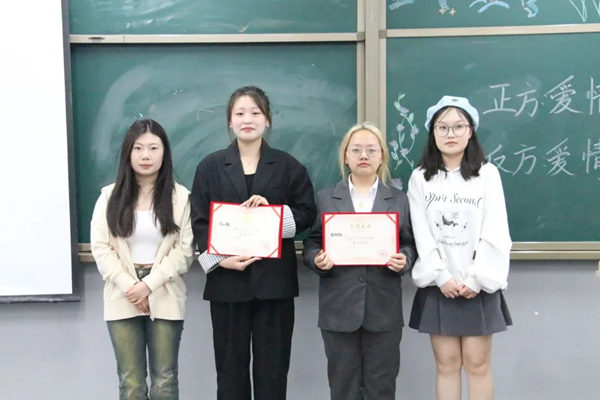 经过激烈的角逐,正方一眼万年队获得冠军,反方爱情永恒一定队获得亚军。评委嘉宾与选手进行合影留念。