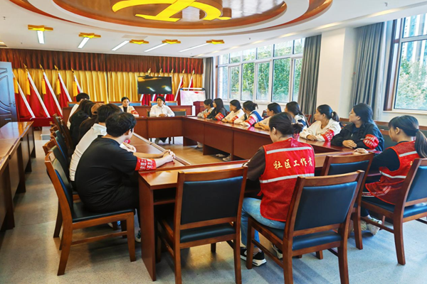 为进一步弘扬“奉献、友爱、互助、进步”的志愿者精神,增强学生服务社会、服务群众意识,值此国庆佳节来临之际,9月25日,会计学院蒲公英志愿者协会在夏雨老师带领下,走进燕顺路街道甜城社区开展志愿服务活动。活动伊始,燕顺路街道甜城社区党支部书记、居委会主任栾兰积极响应号召,讲述了甜城社区深入推进“党建+家校社共建”,在社区文明创建工作中,充分发挥基层党组织的核心领导作用和校园志愿者服务,为学生提供实习实践机会,同时指出目前社会工作者的晋升机制以及薪资待遇。随后夏雨老师感谢社区提供的这次实践机会,叮嘱志愿者要抓住每次实践机会,引导志愿者们深刻认识到目前就业形势以及社区志愿者这一新思路。