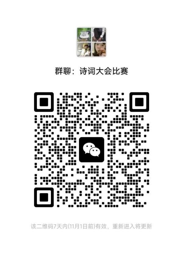 请有意向代表学院参赛的同学在规定时间内,加入指定学院诗词大赛成员选拔群(可通过文章末尾二维码扫码加入)