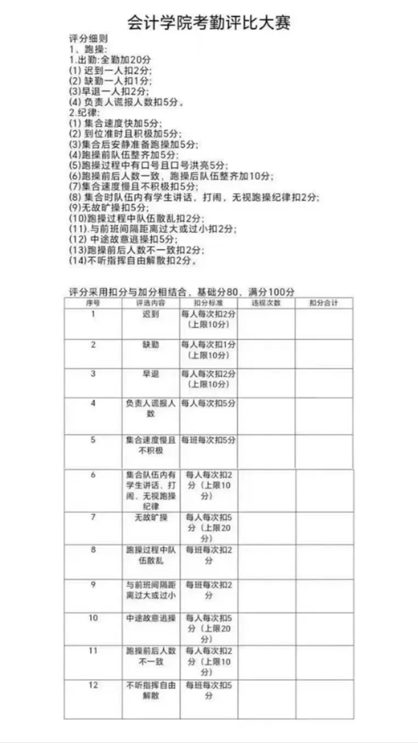 本次活动旨在锻炼同学们的体质,提高团队精神,促进学生身心健康,展现奋发向上的学院风采。这不仅能够提升同学们的学习效率,还可以帮助同学们养成良好的生活习惯。大赛将以班级为单位进行评比并持续一个学期,每月公布一次评比结果,本学期末决出一等奖、二等奖、三等奖并给予奖励。