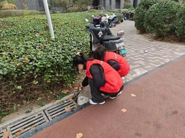 一组在社区里清洁美化环境,包括打扫垃圾、清除小广告等,学生志愿者们干劲十足,有效地提升了社区的环境质量,让居民们闻到温暖友爱和生机勃勃的气息。
