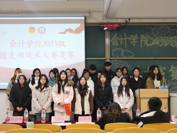 为热烈庆祝中华人民共和国成立75周年,回顾新中国建设的光辉历程,增强学生的爱国主义热情,激发广大青年学生的民族自豪感和自信心,在2024年11月20日,会计学院于D202组织了2023级团支部风采大赛复赛。此次大赛旨在展现各班级的独特魅力和团结协作精神,通过才艺展示、文化演绎等多种方式,为学生们提供一个展示自我、锻炼能力的平台,更能增强班级凝聚力。