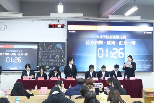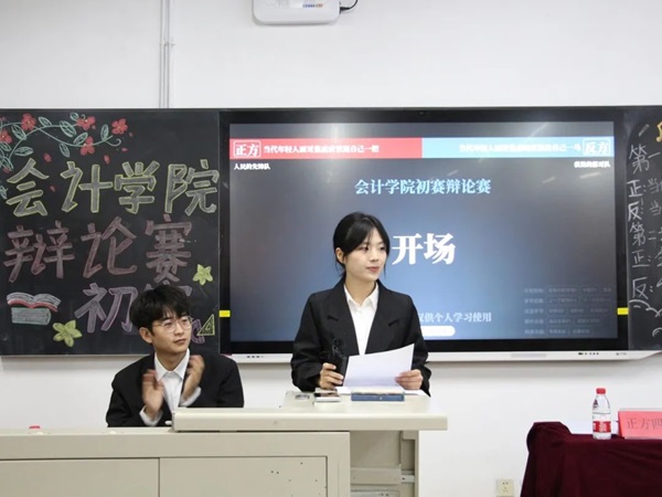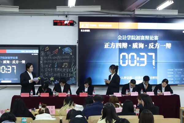 11月22日,会计学院社团管理部和辩论社于M楼201联合举办辩论赛初赛。本场比赛分为两场:第一场:生活中,拿得起更重要还是放得下更重要。第二场:当代年轻人面对焦虑应该逼自己一下还是放自己一马。