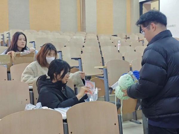 在前期的精心筹备中,学生们投入了无数的心血,只为呈现最温暖、最舒适的围巾。一针一线,皆为志愿者们对孤困儿童的温情倾注。在活动前期,志愿者们积极撰写活动方案,制作活动海报,建立微信群。同时为报名参加的志愿者们发放毛线,耐心的为参与此次活动的学生们提供指导,从绕线、起针到编织、收尾,每一步都细致入微。随后安排围巾统一收集,组织志愿者在横幅签名、写寄语,表达对留守儿童的关爱。在此环节,将收集会计学院学生写给留守儿童的回信,以此作为构建大学生与留守儿童之间情感纽带的桥梁,彰显爱心传递的力量。经过志愿者的指导与鼓励,学生们都掌握了这项技能,并表示很开心能为留守儿童贡献自己微薄的力量。