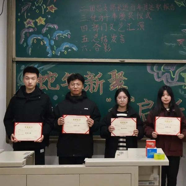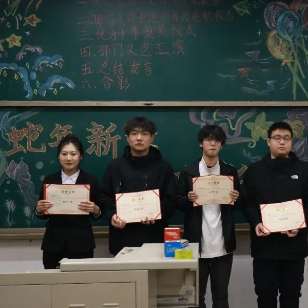 表彰环节,由孙金勇老师宣读表彰文件,办公室、社会实践部、宣传部、组织部、网络技术部的多位优秀干事获表彰。他们在各自岗位表现突出,凭借高度的工作热情,专注的工作态度和关键时刻的突出表现赢得荣誉。副书记柴欣宜、孙佳莹、陈若涵、付晓雪、韩怡笑依次为获奖同