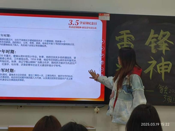 活动伊始,一场别开生面的雷锋精神分享会拉开帷幕。团支书通过生动的 PPT 展示和感人的故事讲述,为大家呈现了雷锋短暂却无比璀璨的一生。从雷锋在工作中展现出的“干一行、爱一行、钻一行”的敬业精神,到他在生活里对战友、对群众无私奉献的点点滴滴,每一个细节都深深触动着在场的每一位团员。