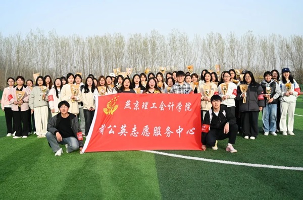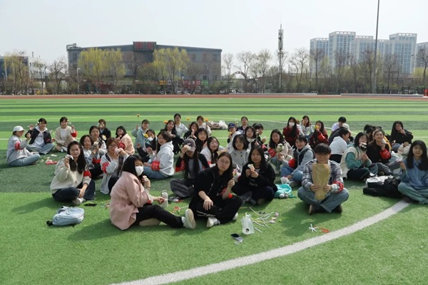 3 月 26 日中午,志愿者来到燕京理工学院体育公园积极参与清明手工制花活动。